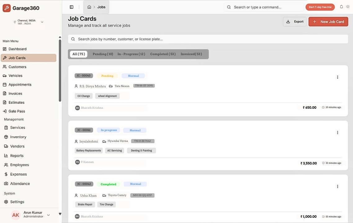 Getting started is quick and simple. You can set up your garage, add services and customers, and begin managing daily operations within minutes.